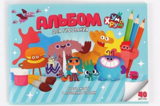 Для детского творчества — альбом для рисования формата А4 объемом 40 листов. Обложка украшена яркими иллюстрациями с Умом и Хрумом, а плотная бумага подходит для рисования карандашами, фломастерами и красками.